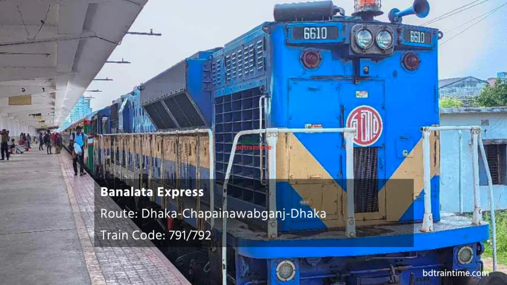 Banalata Express is one of the most modern, fast, and luxurious trains in Bangladesh Railway, making the journey between Chapainawabganj and Dhaka more comfortable and time-efficient.